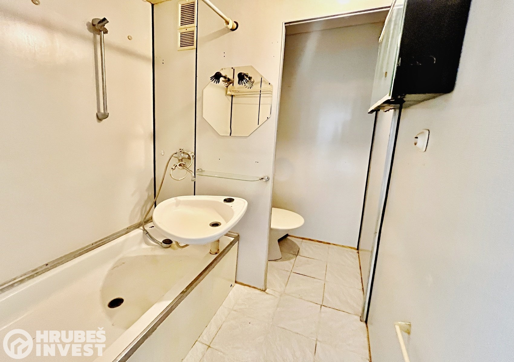 Hledáte byt v Hradci Králové blízko centra, ale i v blízkosti přírody? Co třeba byt v původním stavu, v panelovém domě po kompletní revitalizaci v ulici Fričova. Byt má výměru 38,3 m2, nachází se v 5 NP ze 7, s výtahem, má dispozici 1+1, skládá se ze vstupní chodby, ze které je vstup do koupelny s toaletou, pokoje a kuchyně s jídelnou, dále k bytu náleží sklepní kóje, balkon je v mezipatře. V celém bytě jsou namontována plastová okna. Byt je v původním stavu (umakartové jádro), můžete si jej vybudovat dle vlastních představ. Lokalita má kompletní občanskou vybavenost, školka, škola, obchody, lékárna, lékař, za domem točna autobusů, …. .