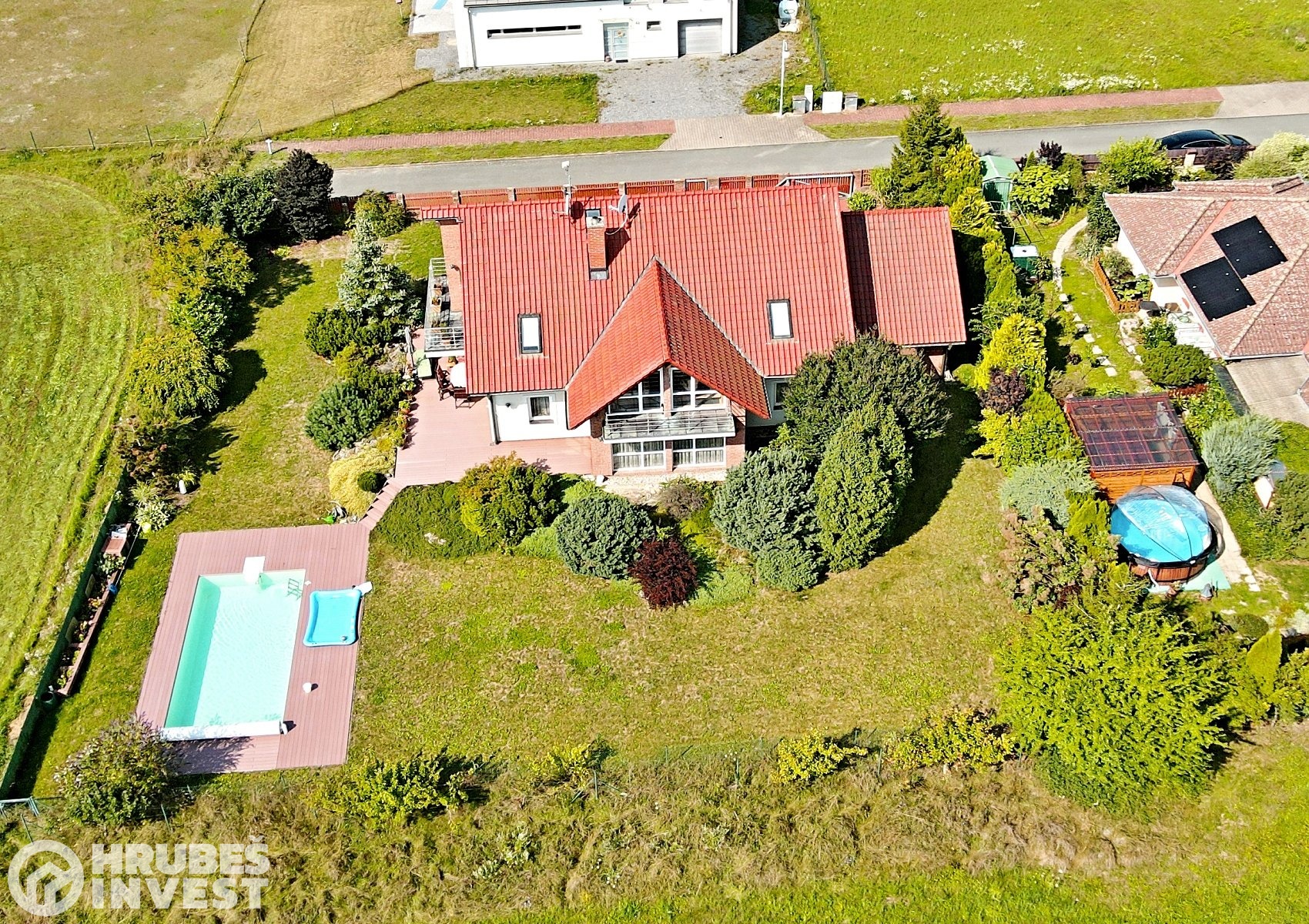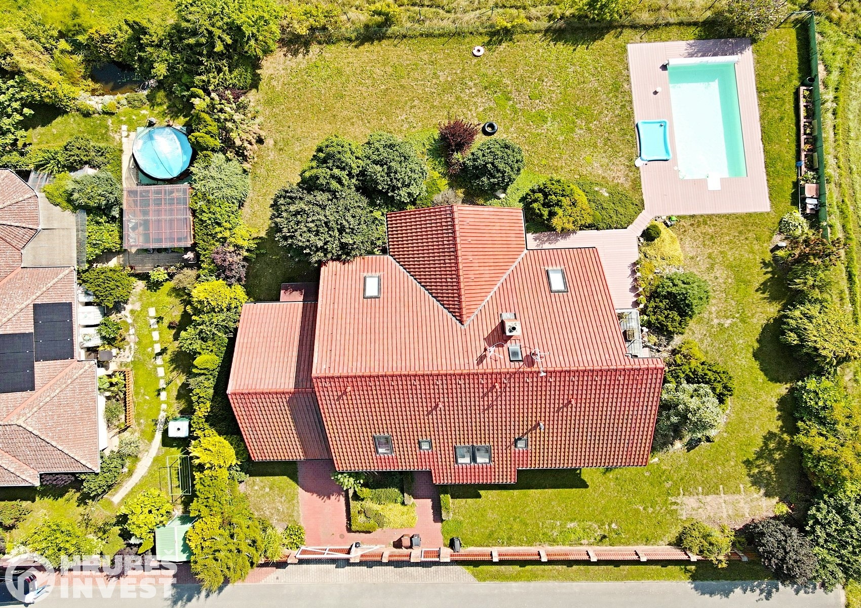 Hledáte bydlení na velmi klidném místě s nádherným výhledem, krásnou zahradou s bazénem a terasou? Pojďte se s námi podívat na krásný nadstandardní RD v obci Horní Jelení s pozemkem o výměře 1 196 m2, se zastavěnou plochou 208 m2. Dům byl kolaudován v roce 2006, jeho dispozice je 6+1, garáž, prostor pro posilovnu, nebo jiné využití pokoje se sprchou. Na zahradě je vybudován zapuštěný betonový bazén s fólií Francouzké výroby se slanou vodou a zakrytý lamelovou roletou o rozměru 8m x 4m. Z domu i ze zahrady je nádherný výhled na Orlické hory a při dobré viditelnosti i na Králický Sněžník. Tento výhled Vám po vyčerpávajícím dnu dodá opět energii a úlevu. Okna jsou plastová s dvojskly od výrobce Finstrál, konstrukce je z cihel Porotherm 43cm, střešní krytina Tondach, letos byla vybudována nová terasa z dřevěného kompozitu. Voda je obecní, odpady jsou svedeny do kanalizace, o topení se stará plynový kondenzační kotel s podlahovým vytápěním. V Obci je kompletní občanská vybavenost, vzdálenost do Holic 12 min., do Vysokého Mýta 15 min., do PU 25 min a do HK 30 min.