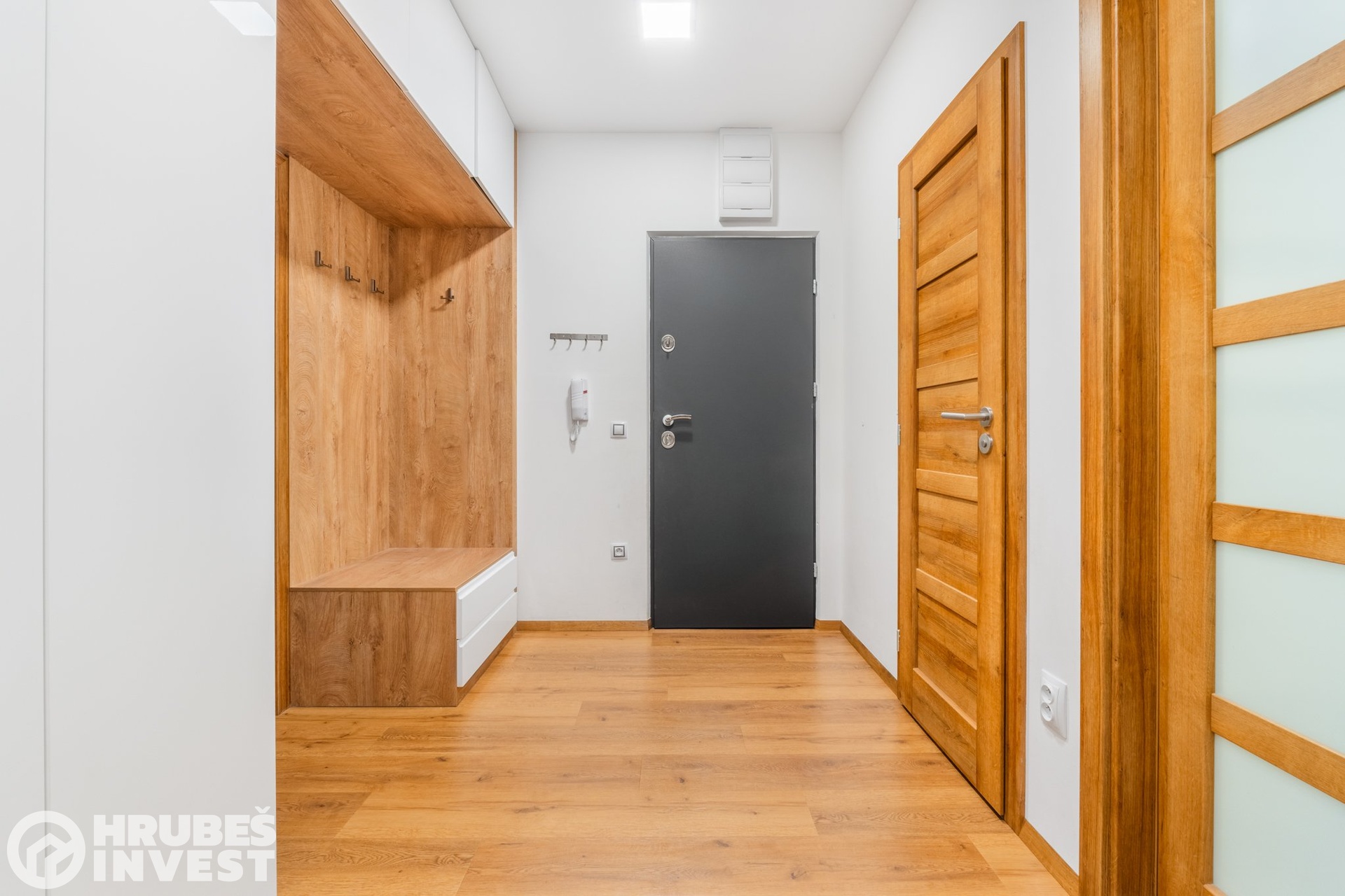 Byt o dispozici 3+kk se nachází v 5. nadzemním podlaží panelového domu s výtahem, který prošel kompletní rekonstrukcí v roce 2019. Tady je opravdu vše promyšlené do detailu – od vestavěných skříní, skryté komory až po elegantní koupelnu, kde najdete vanu i sprchový kout.