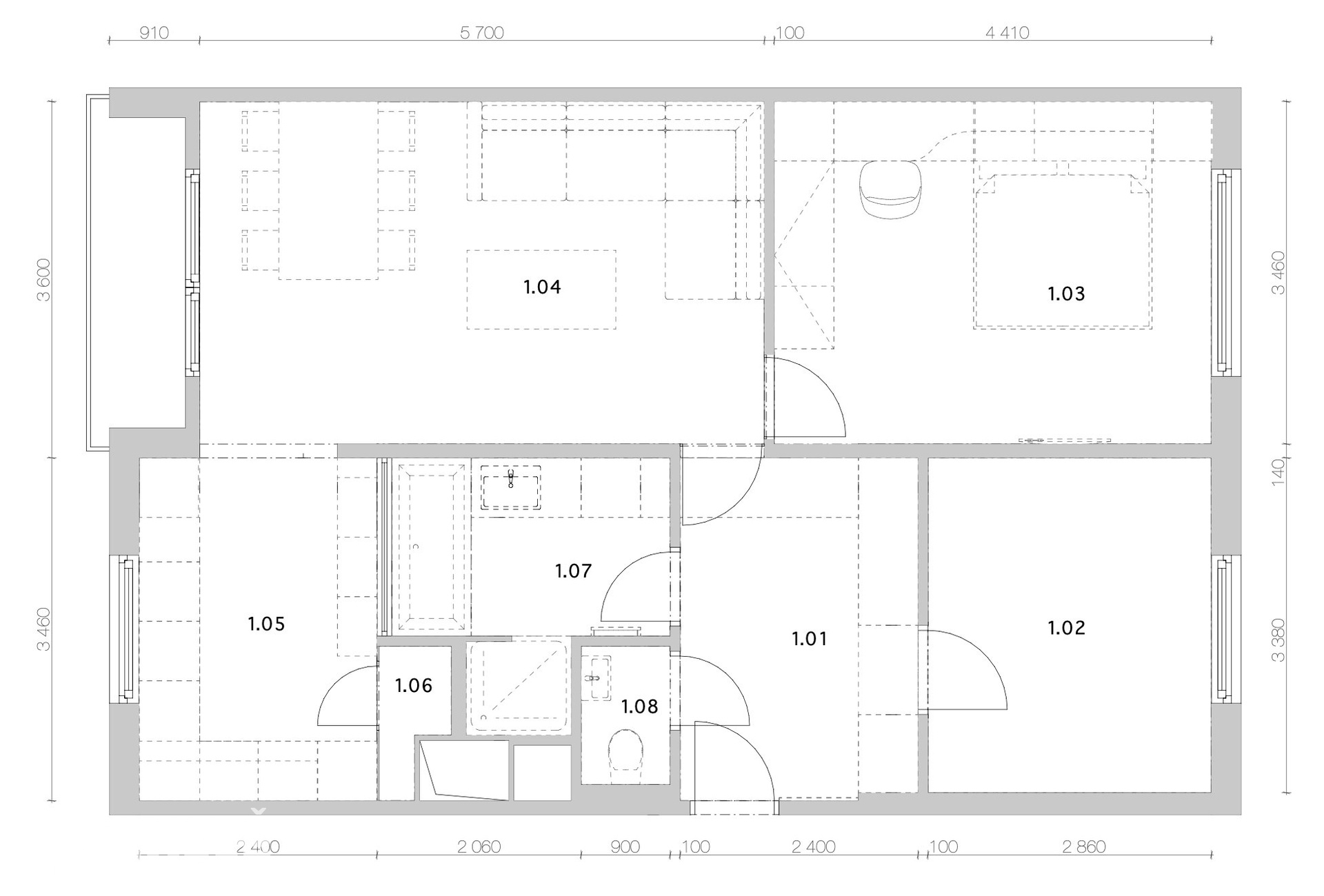 Dispozici místností najdete na přiloženém půdorysu ve fotogalerii.